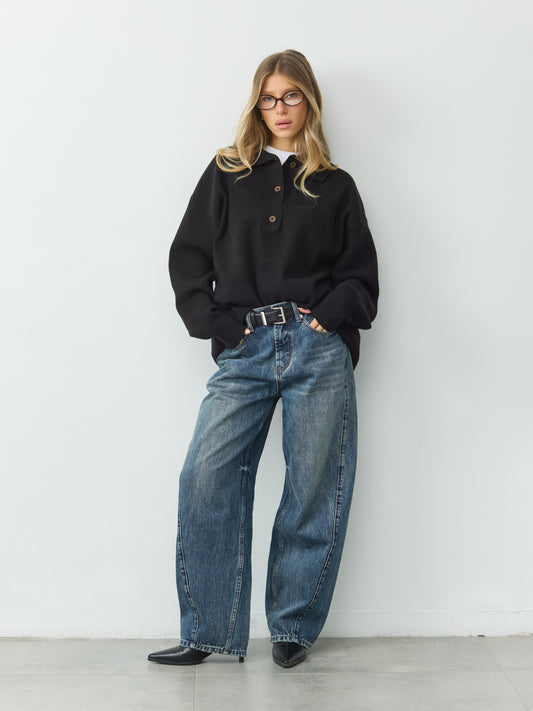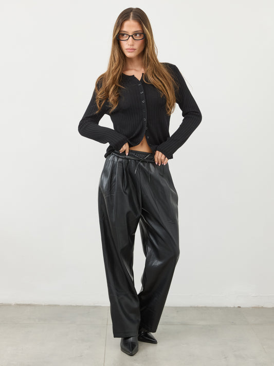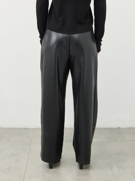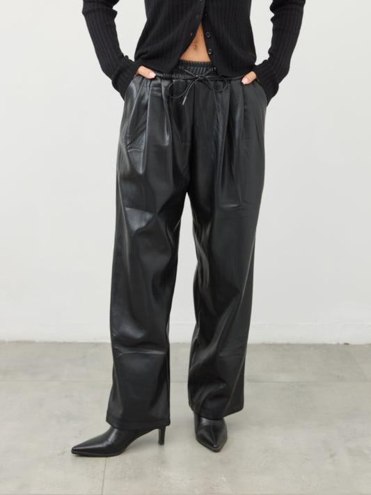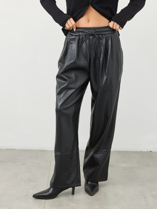 מכנסיים דמוי עור ארוכים דמי | שחור