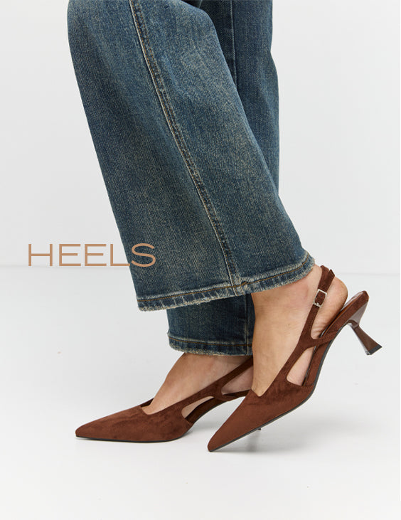 נעלי עקב דמוי זמש שפיץ לואיז | חאקי