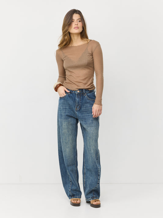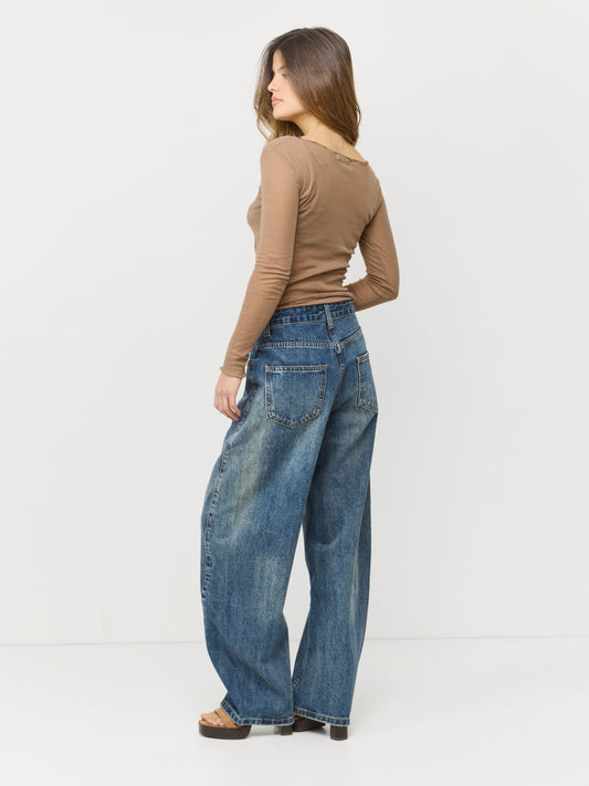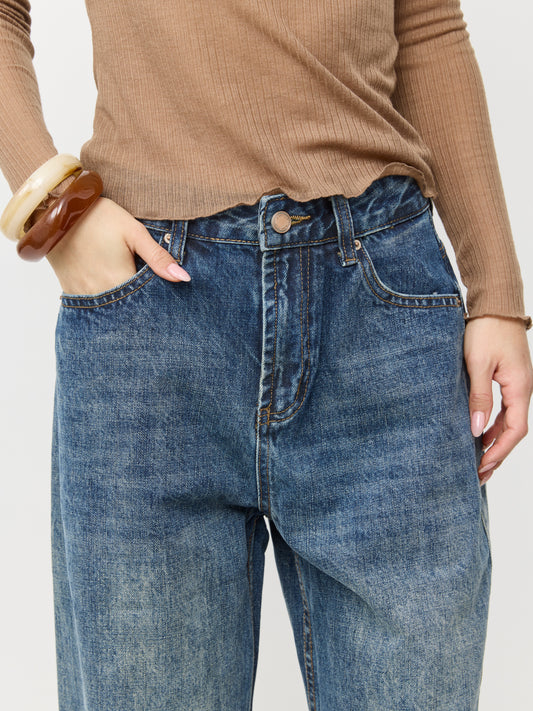 • מכנסי ג'ינס בגזרת בלון מנואל | כחול