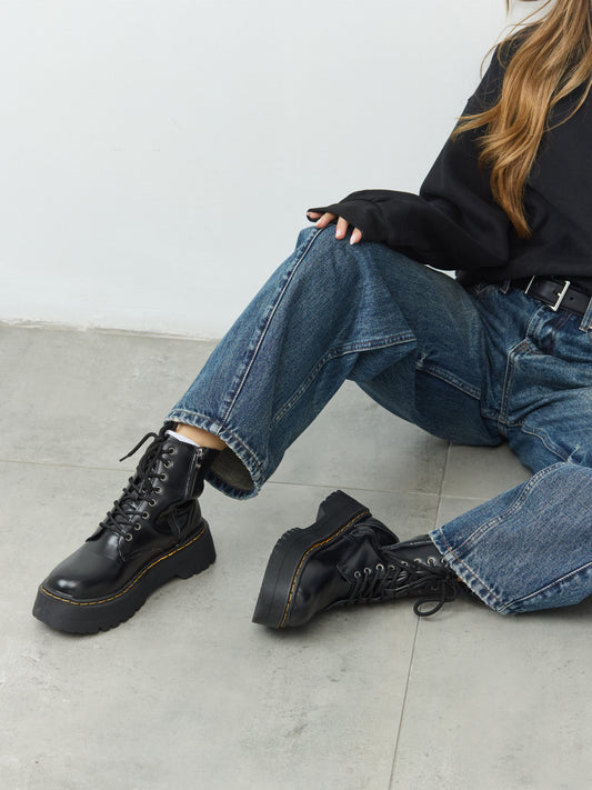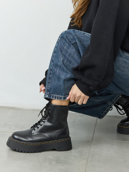 מגפוני פלטפורמה שרוכים מרטי | שחור