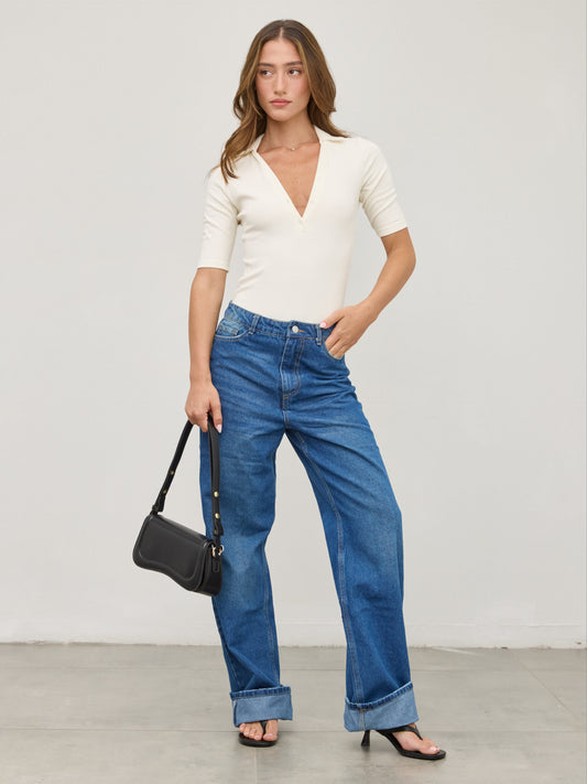 ג'ינס בגיזרה ישרה רוברט | כחול כהה