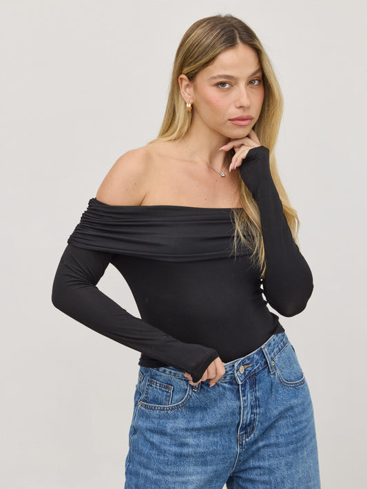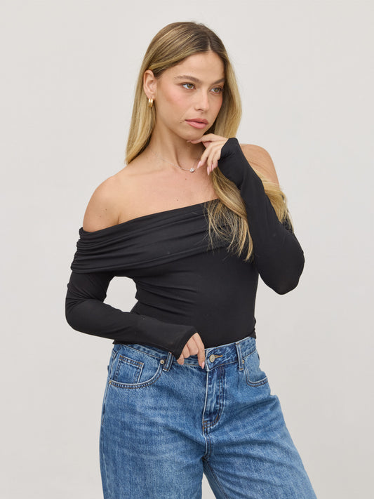 • חולצת אוף שולדר לאב | שחור