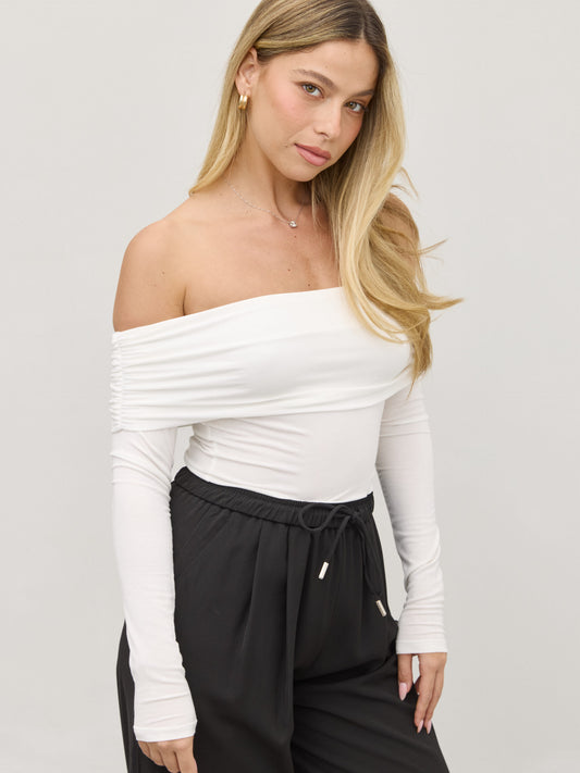 • חולצת אוף שולדר לאב | לבן