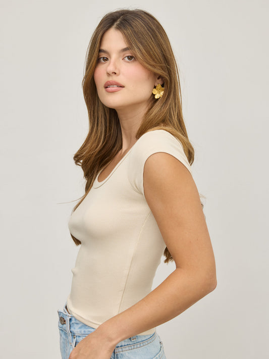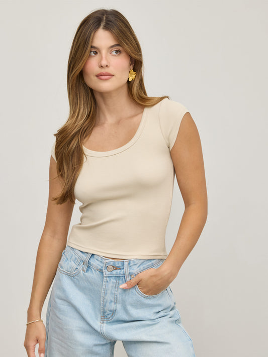 • טישירט בייסיק צווארון עגול אליאנה | בז'