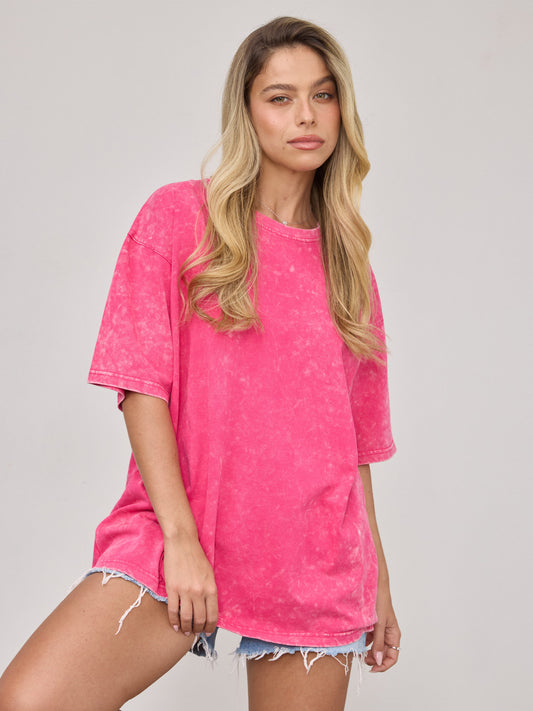 • טישירט בייסיק אוברסייז טרי | ורוד