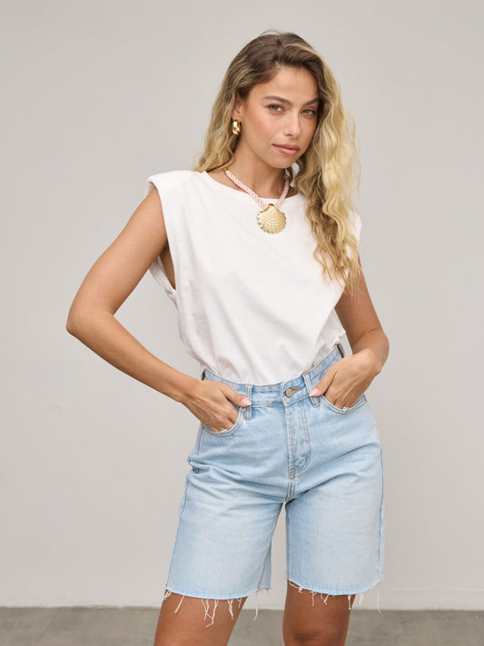 גופיית בייסיק עם כריות כתף מורי | לבן