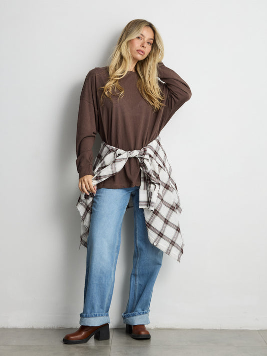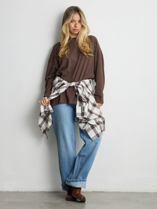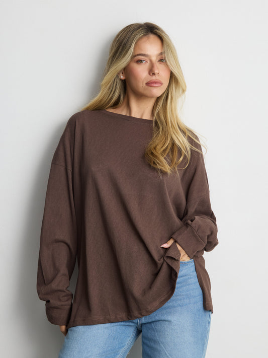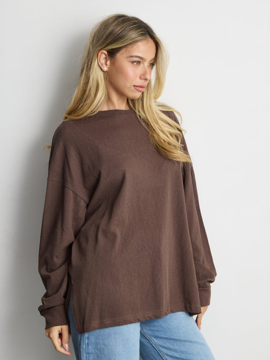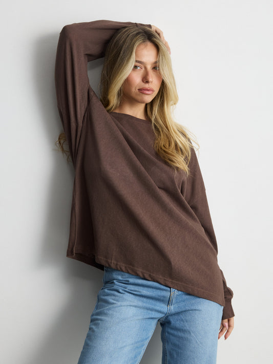 טישירט שרוול ארוך אוברסייז פגי | חום