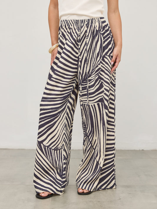 מכנסי פסים ארוכים מיגל | שחור