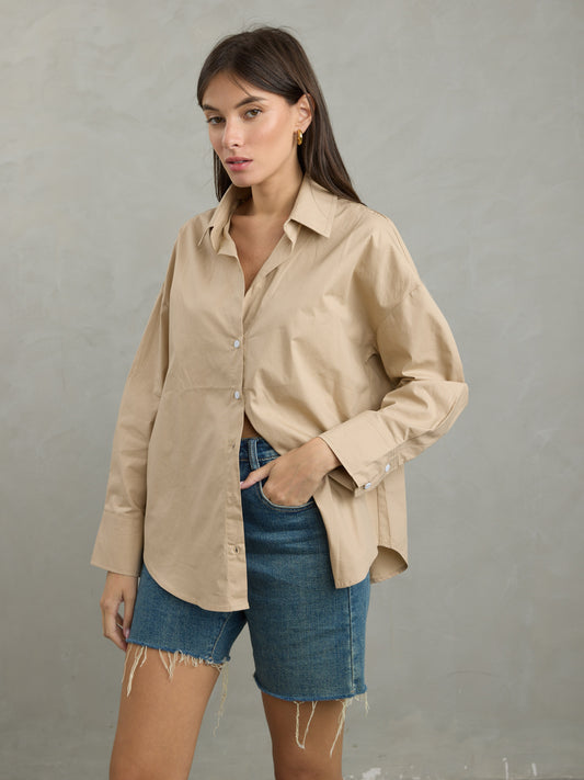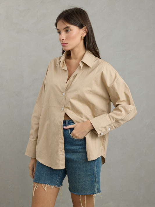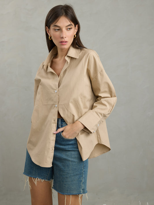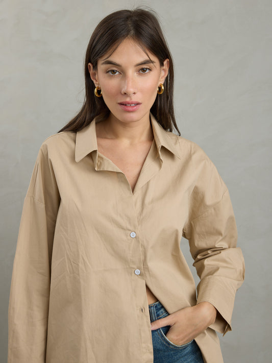 חולצה מכופתרת חלקה קורל | בז