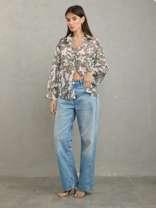 חולצה מכופתרת הדפס פייזלי | בז'