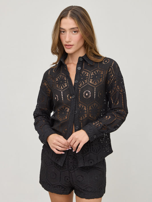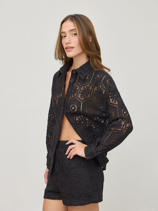חולצת תחרה מכופתרת דוני | שחור