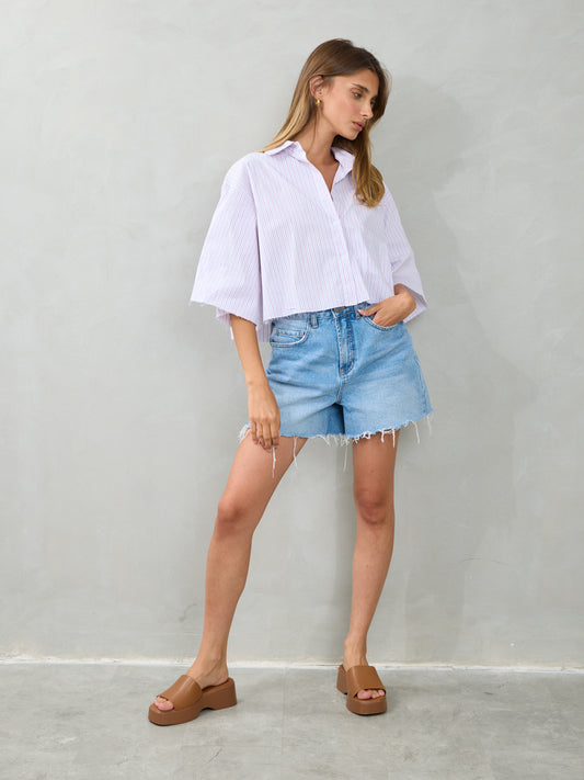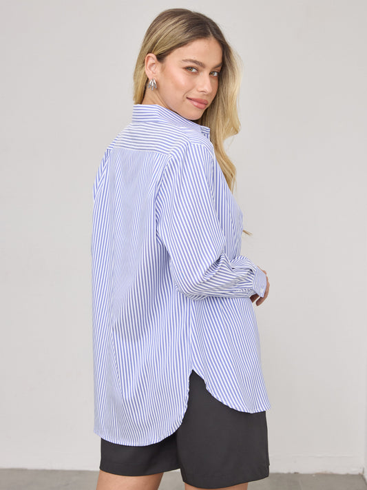 חולצה מכופתרת פסים מנדי | כחול