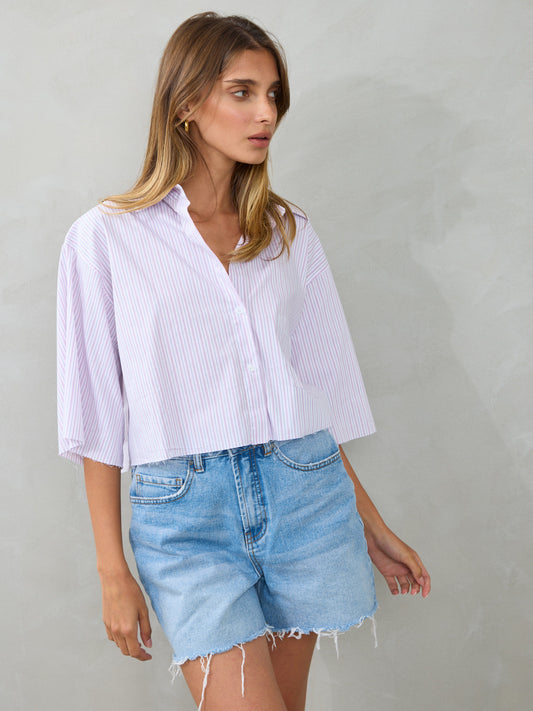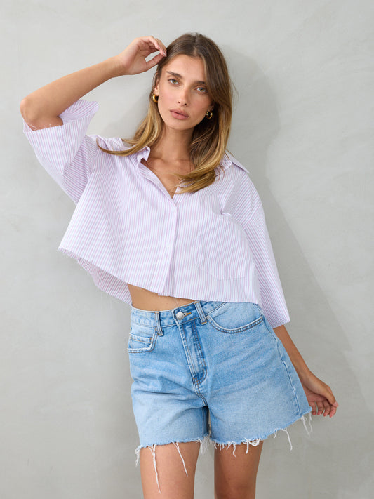 חולצה מכופתרת קרופ מיז | ורוד