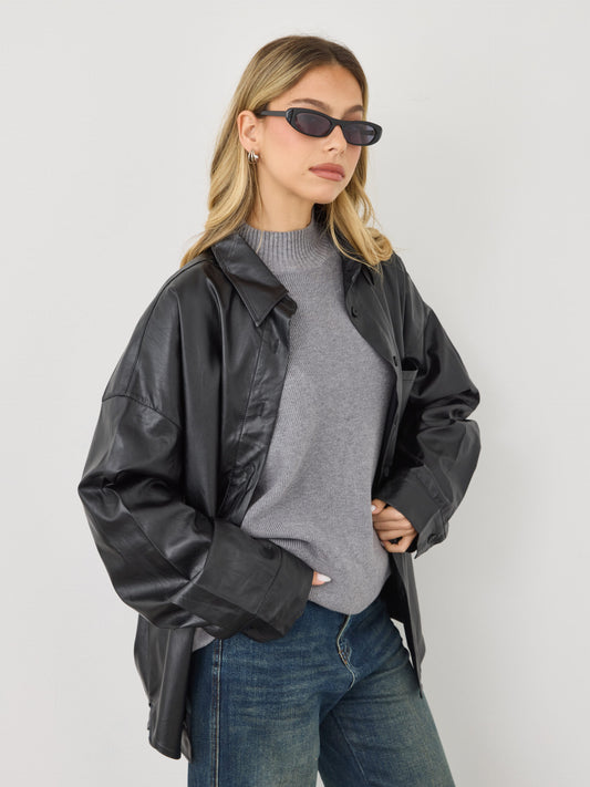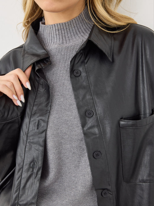 חולצה מכופתרת דמוי עור קיה | שחור
