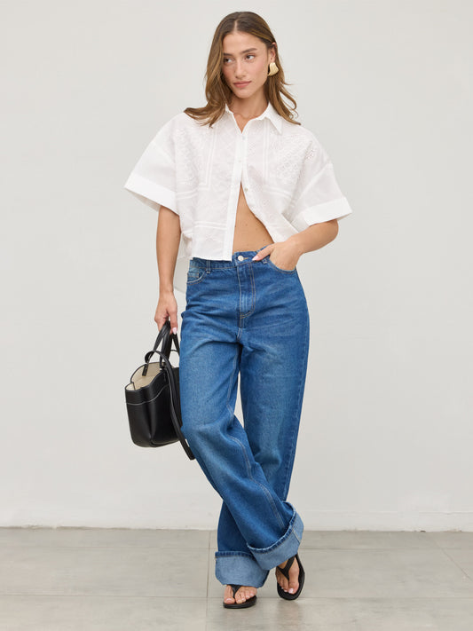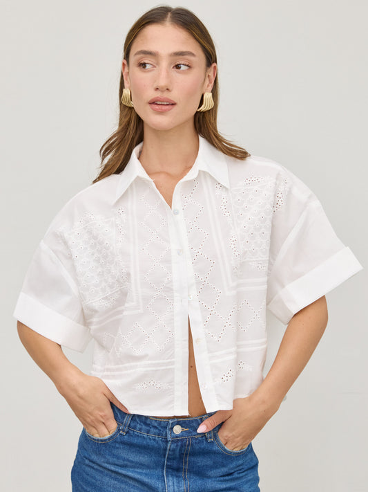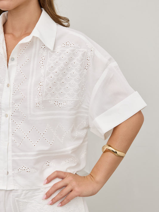 חולצת תחרה מכופתרת ואל | לבן