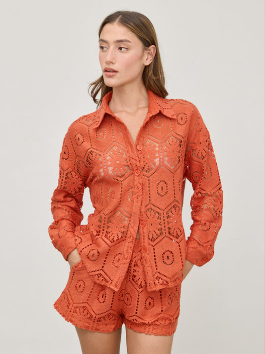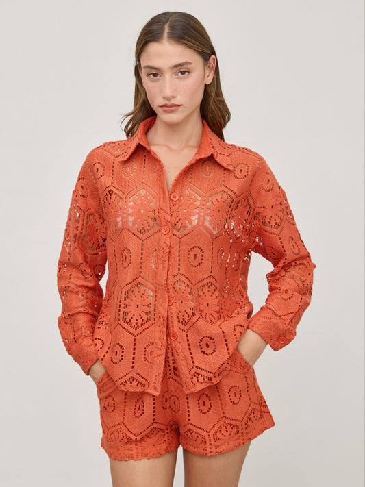 חולצת תחרה מכופתרת דוני | חמרה