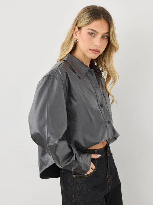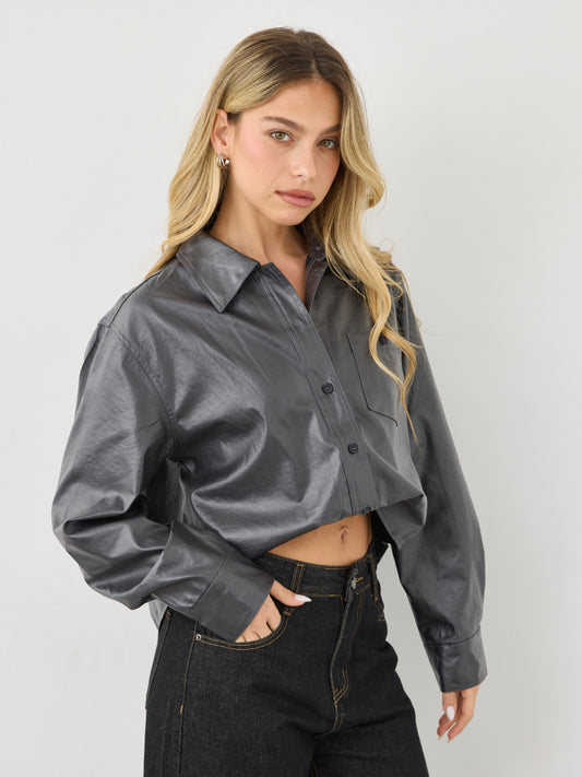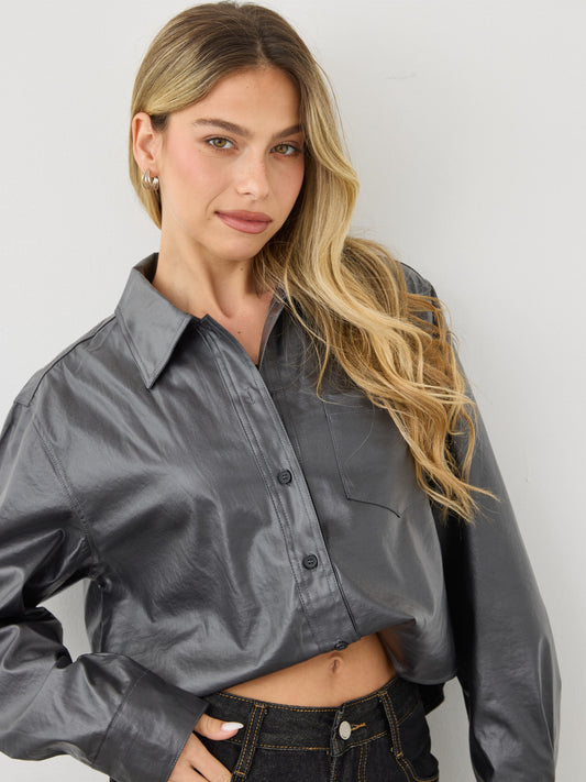 חולצה מכופתרת דמוי עור קנדל | שחור
