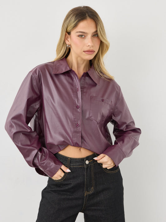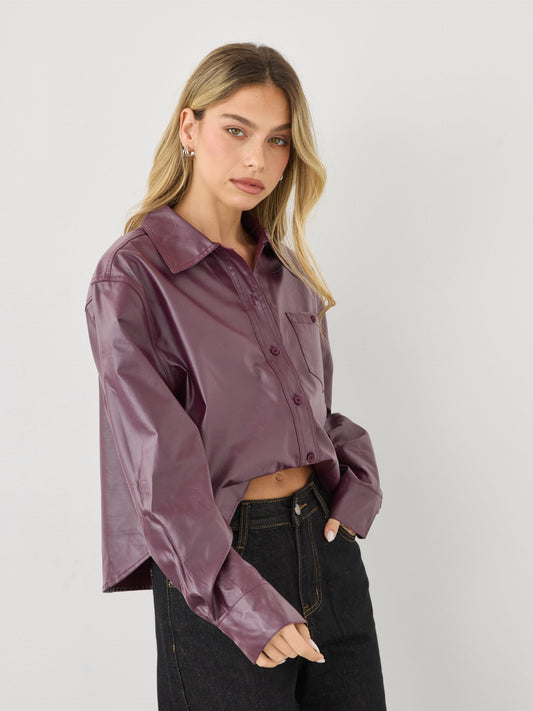 חולצה מכופתרת דמוי עור קנדל | בורדו