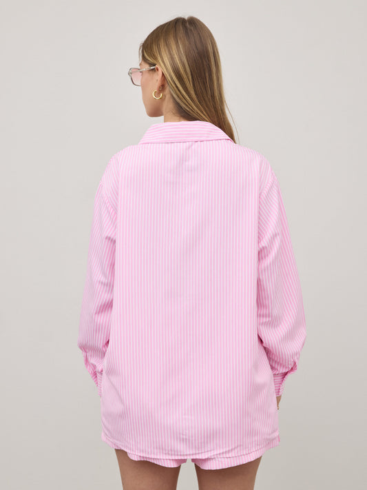 חולצה מכופתרת פסים אלין | ורוד