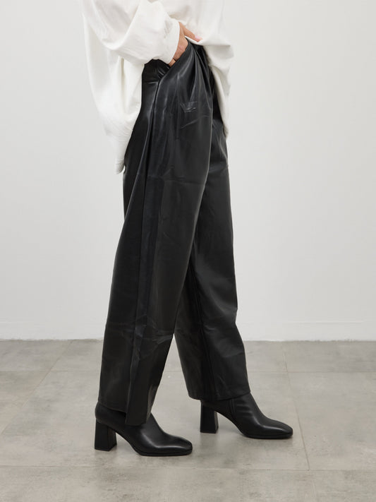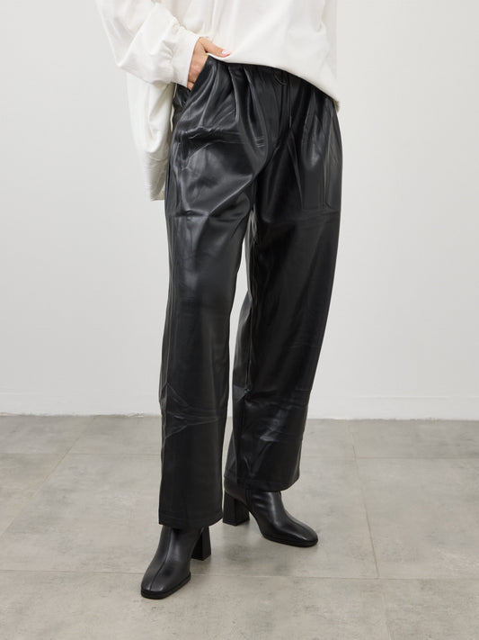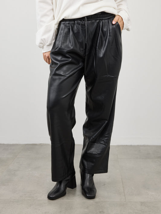 מכנסיים דמוי עור ארוכים דמי | שחור