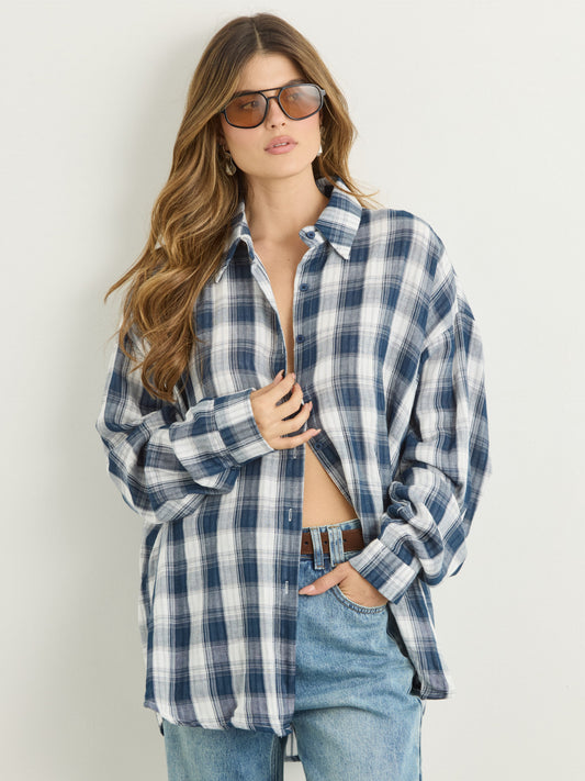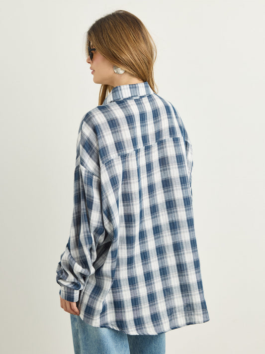 חולצה מכופתרת משבצות דרי | כחול