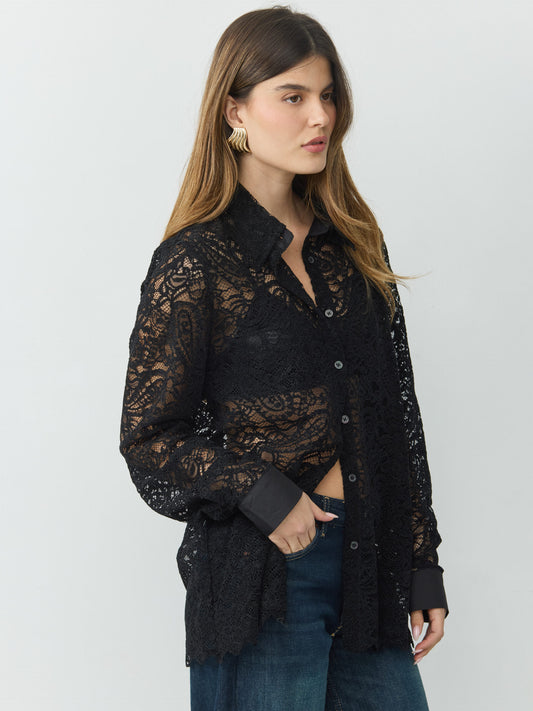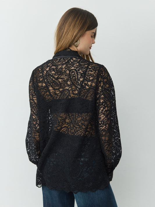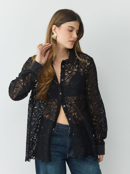 חולצה מכופתרת תחרה ולנטיין | שחור