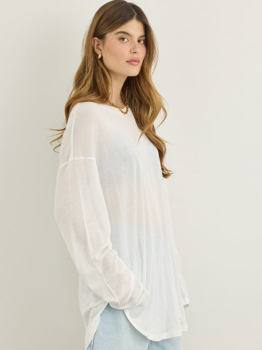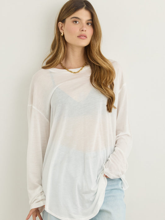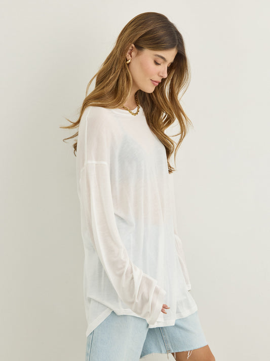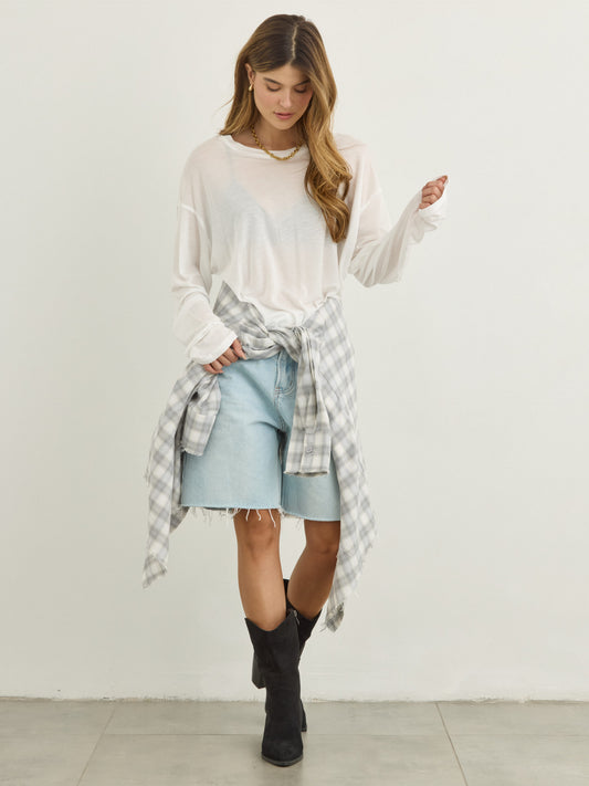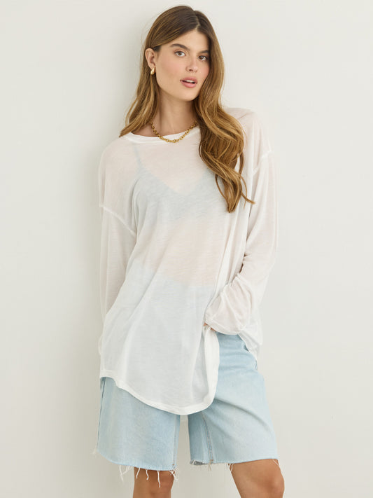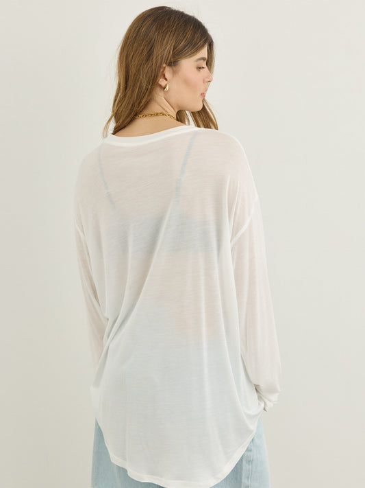 טישירט שרוול ארוך אוברסייז בלו | לבן