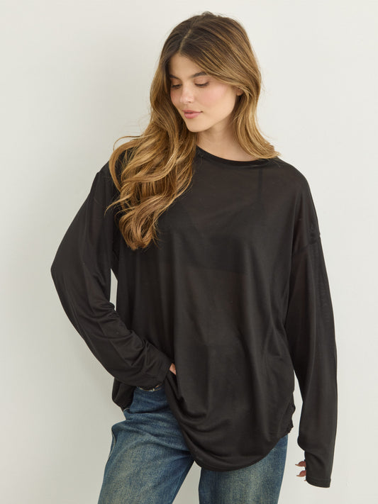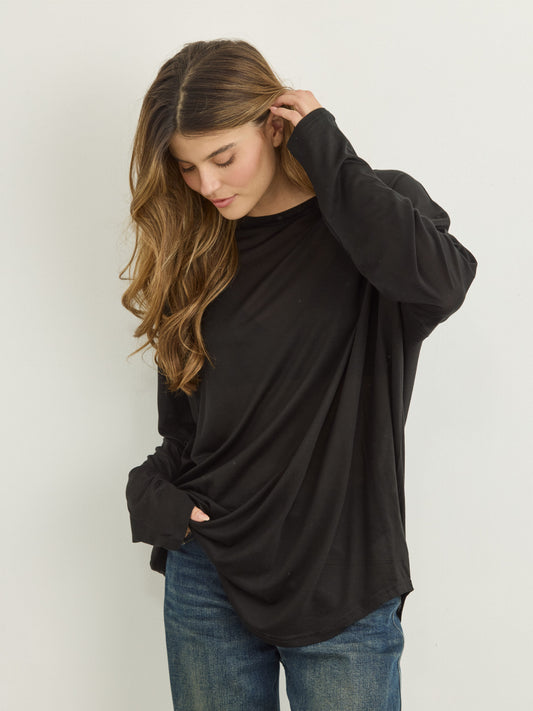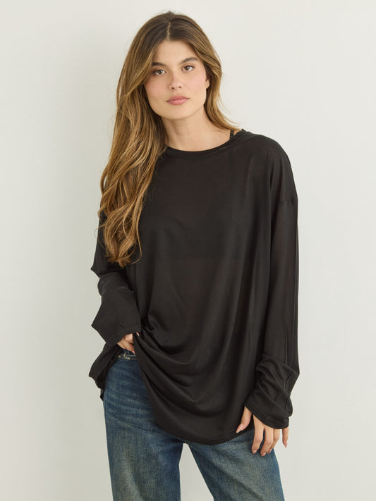טישירט שרוול ארוך אוברסייז בלו | שחור