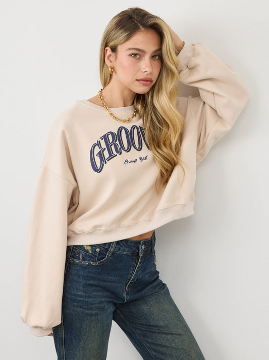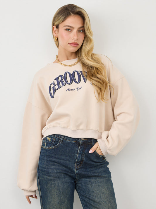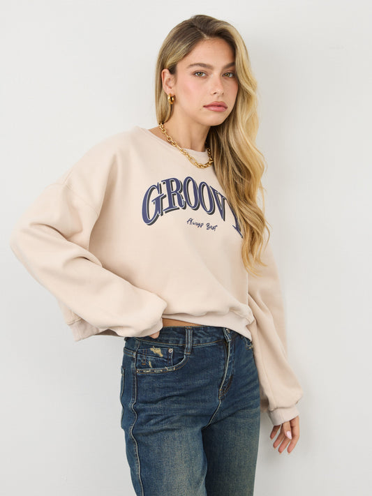סווטשירט עם כיתוב GROOVY | בז'