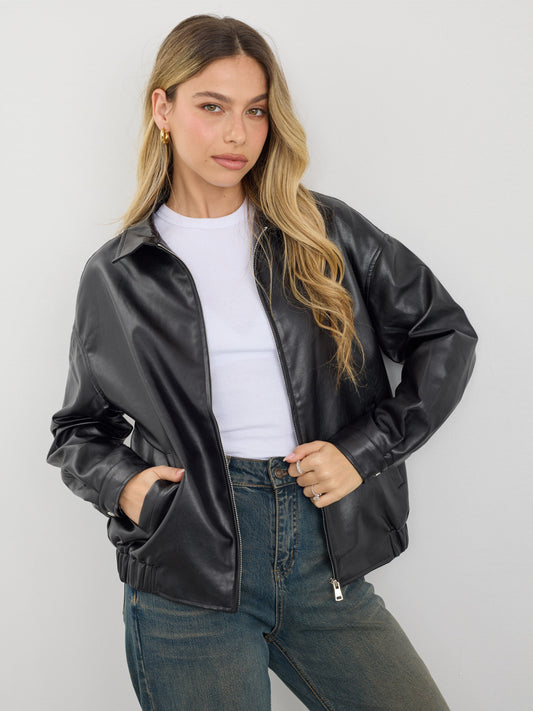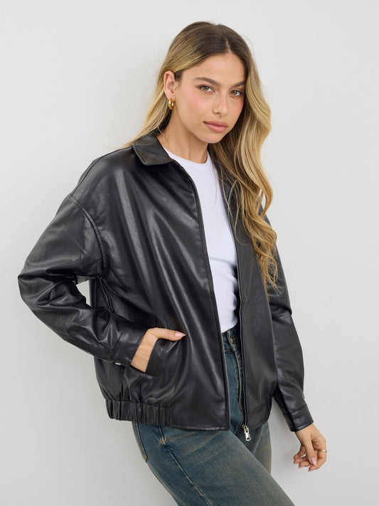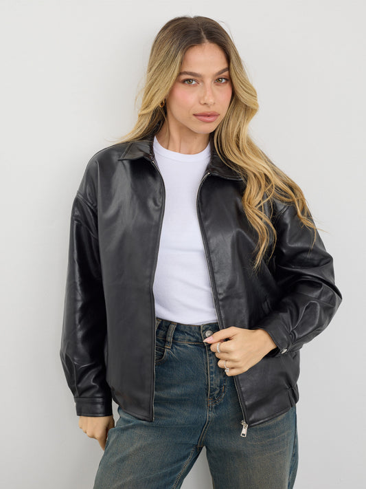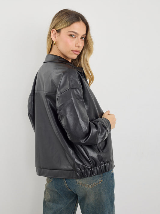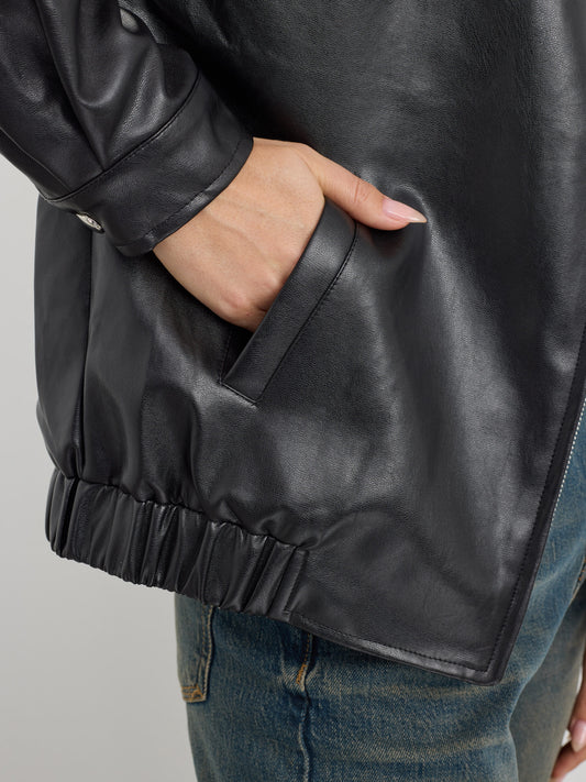 ג'קט צווארון פרווה דמוי עור סמית' | שחור