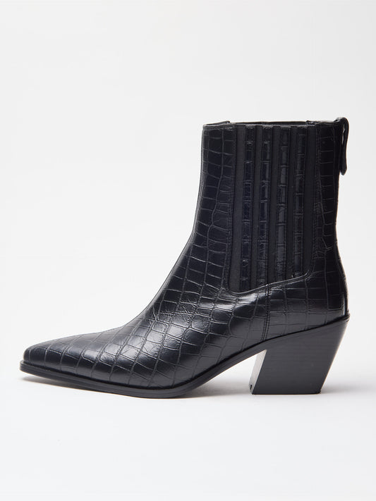 • מגפוני עקב שפיץ טינה | שחור קרוקו