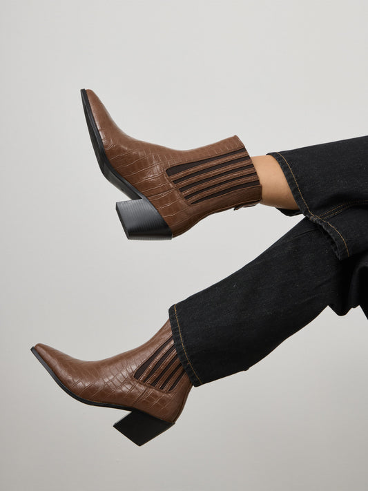 • מגפוני עקב שפיץ טינה | חום קרוקו