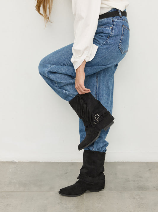 מגפי בוקרים הזמינים אצלנו הם דמוי עור, מחומרים טבעוניים, כך שכל אחת יכולה להנות מהם!