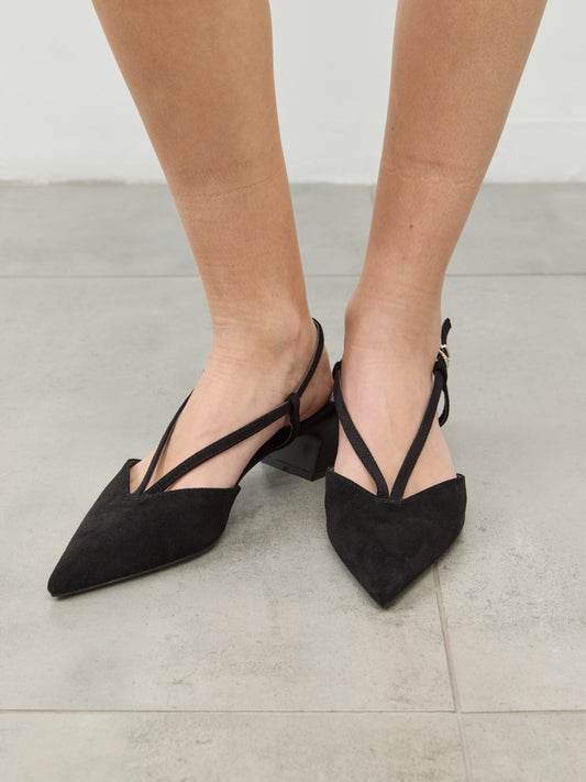 נעלי עקב דמוי זמש שפיץ לואיז | שחור