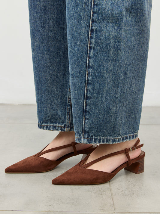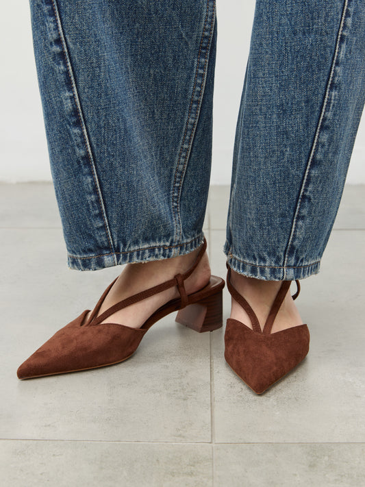 נעלי עקב דמוי זמש שפיץ לואיז | חום