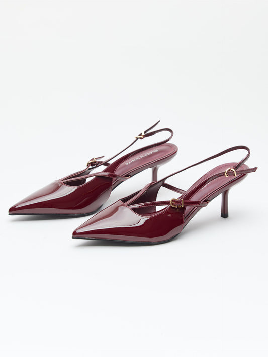 • נעלי עקב רצועות שפיץ בלה | בורדו לק