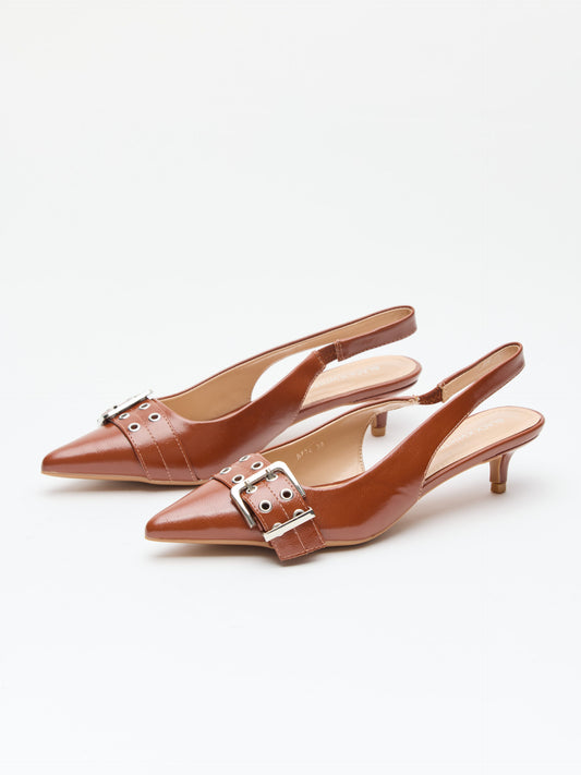 • נעלי עקב רצועות שפיץ בלה | בז' לק