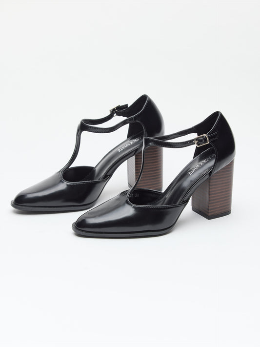 • נעלי עקב רצועות שפיץ בלה | שחור לק