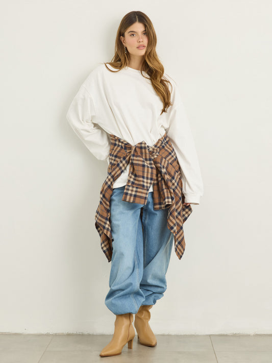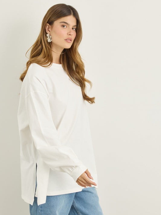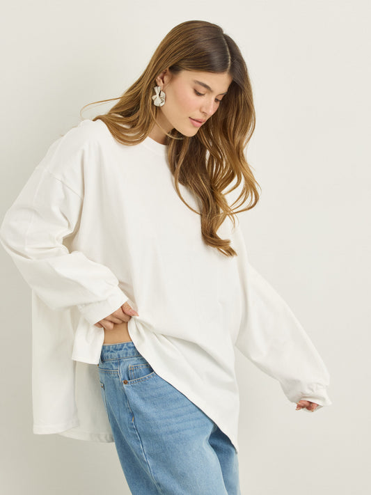 טישירט שרוול ארוך אוברסייז אריקה | לבן