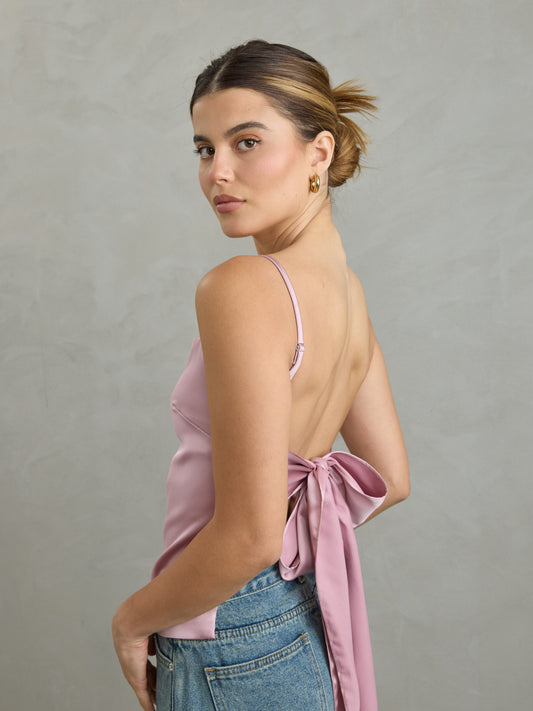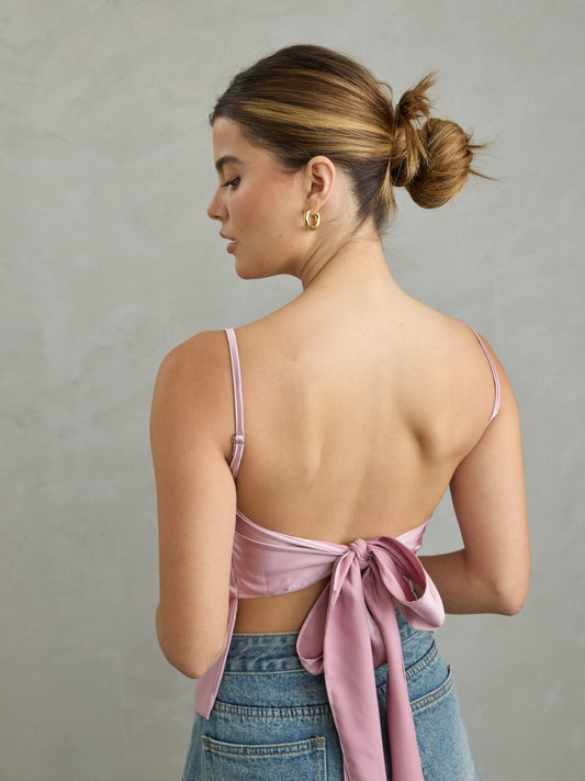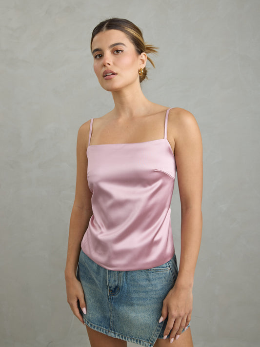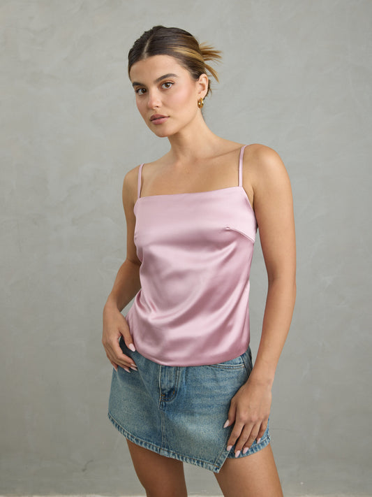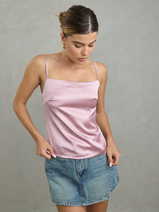 גופיית סאטן אינדי | ורוד