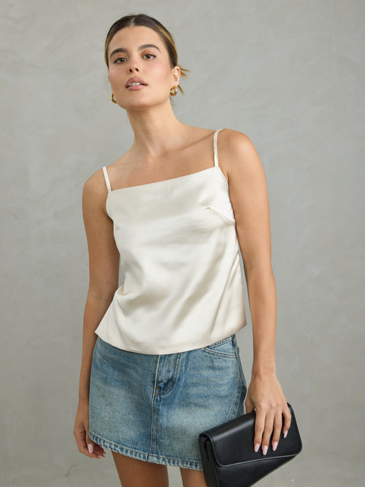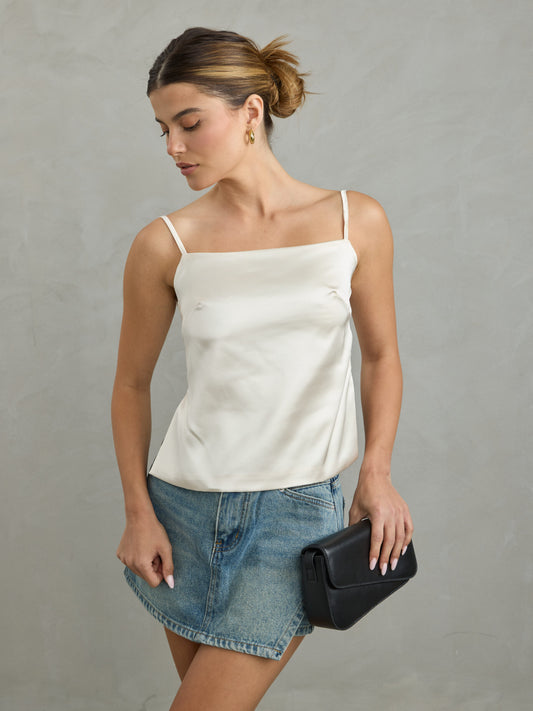 גופיית סאטן אינדי | שמנת