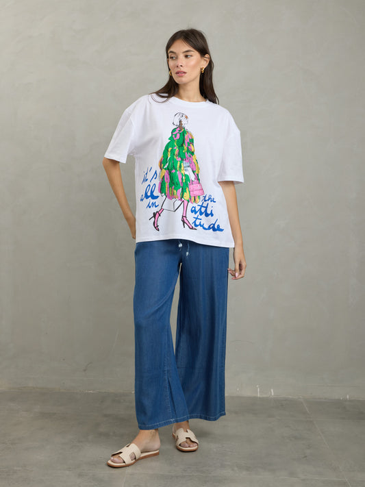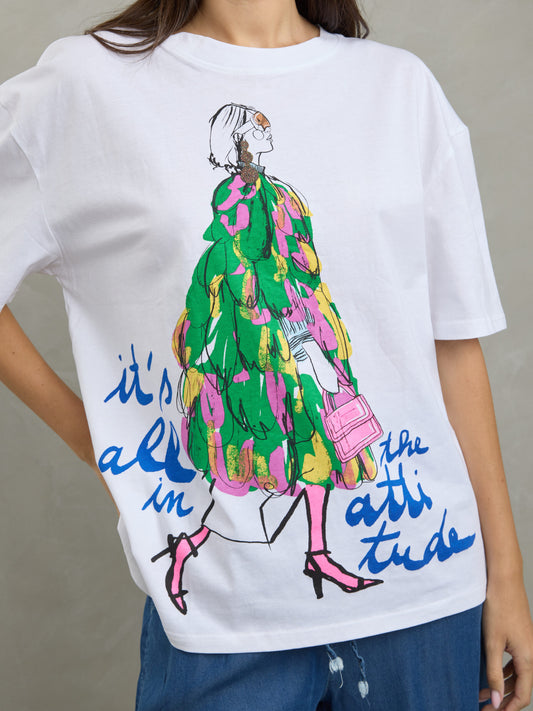טישירט הדפס פרן | לבן