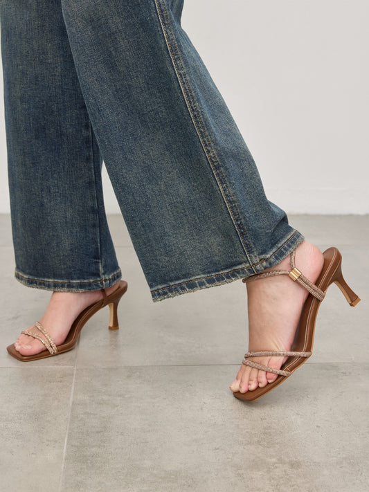 סנדלי עקב רצועות דקות קרטר | חום