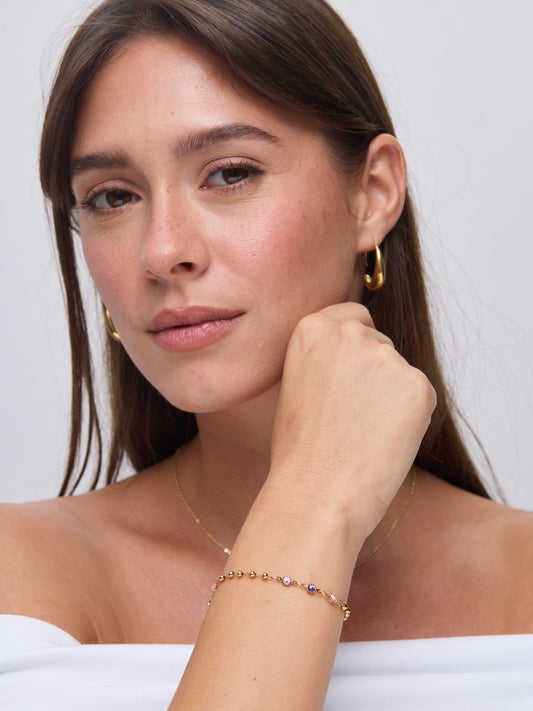 צמיד בשילוב עיגולי זהב וצבעוניים | זהב