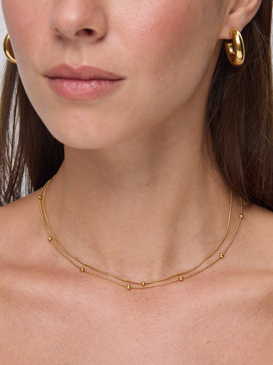 סט שרשראות עם חרוזים גולדי | זהב