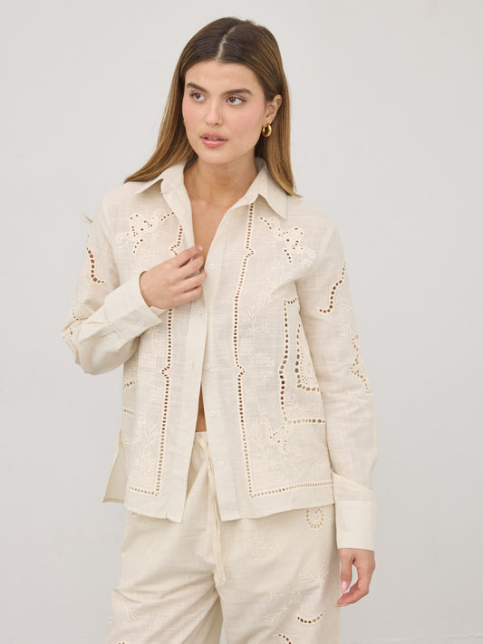 • חולצה מכופתרת פשתן פלורנס | חאקי