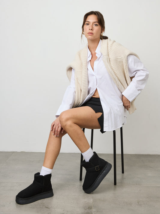 מגפוני פרווה אבזם קלאוס | שחור