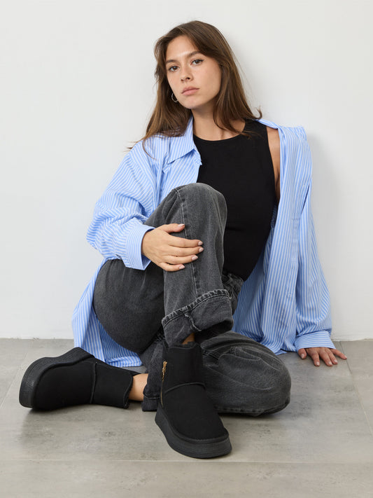 מגפוני פרווה רוכסן ספארק | שחור