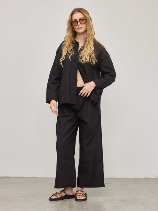 מכנסי פשתן פלורנס | שחור
