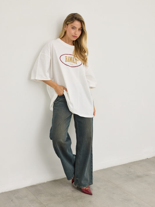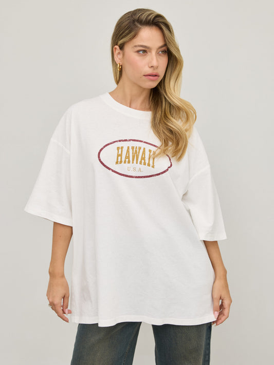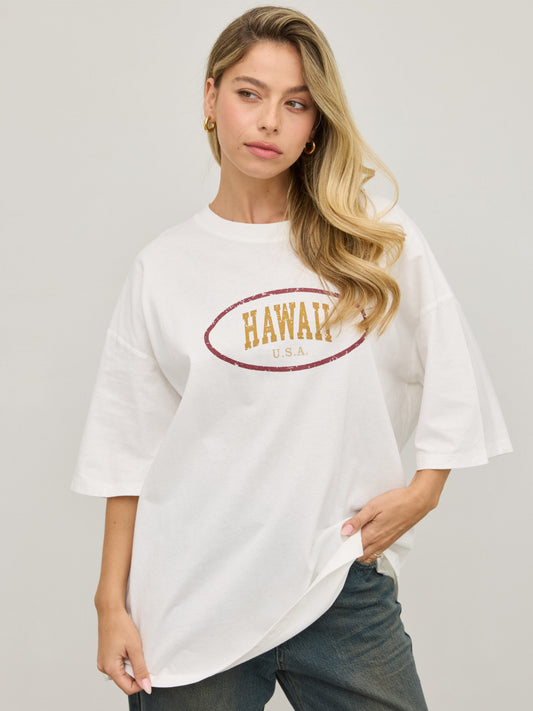טישירט אוברסייז פרינט HAWAII | לבן